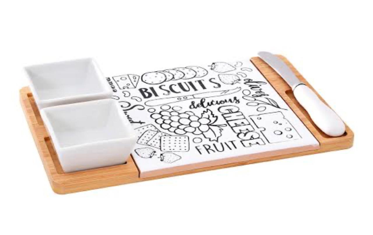 Conjunto petisqueira porcelana e bambu